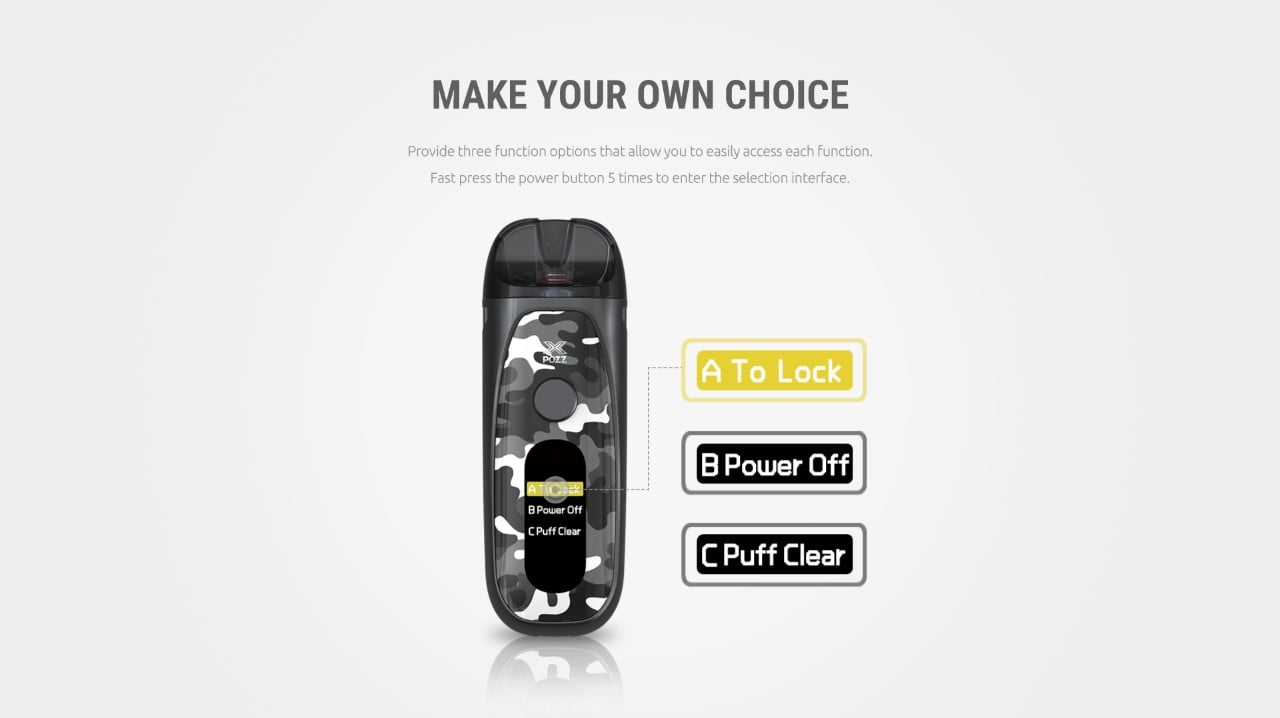 ميزة قفل الطاقة لقفل وظيفة vaping بسبب اللمسات العرضية.