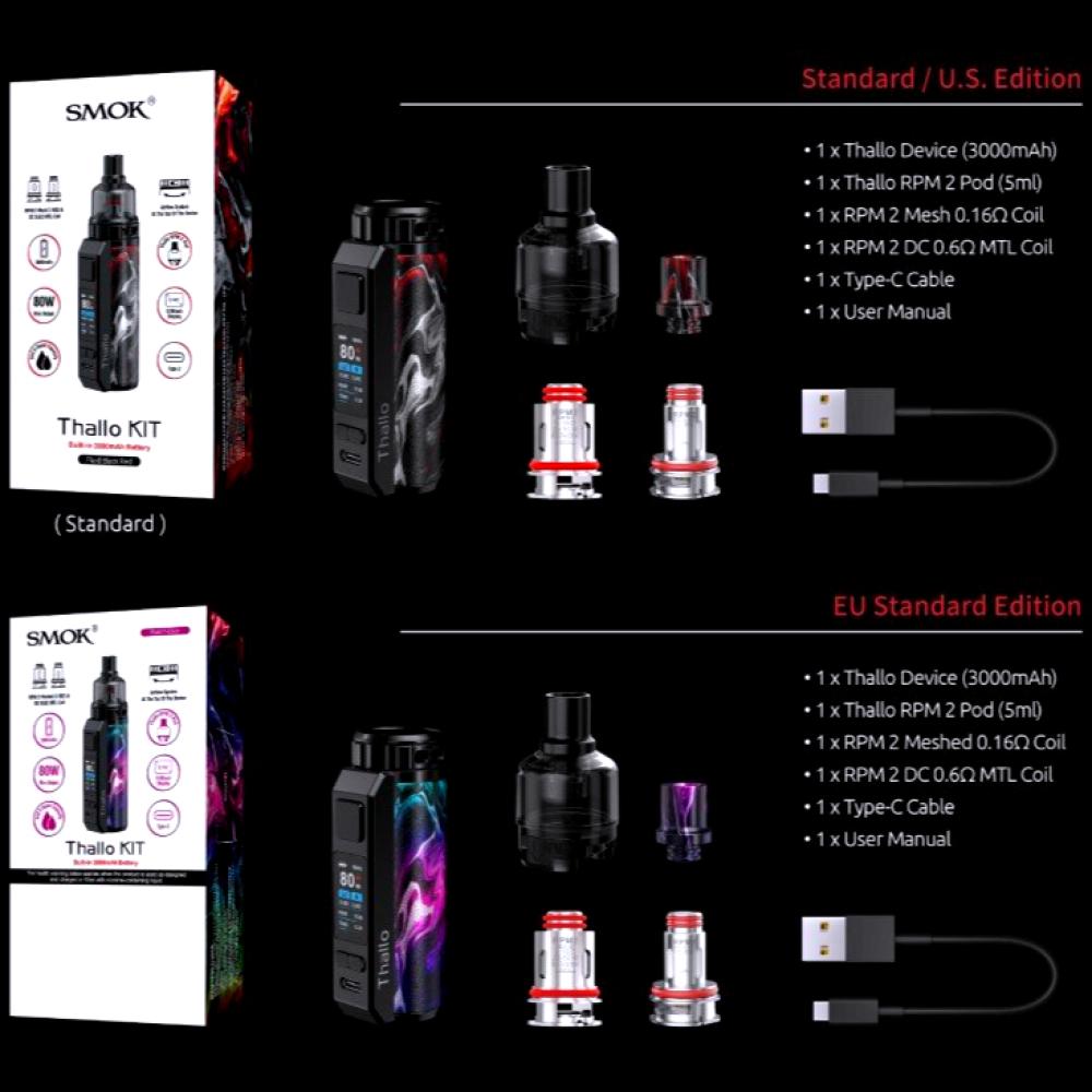 ثم توضّح الصورة أن جهاز SMOK Thallo Kit يدعم نوعين من البودات: