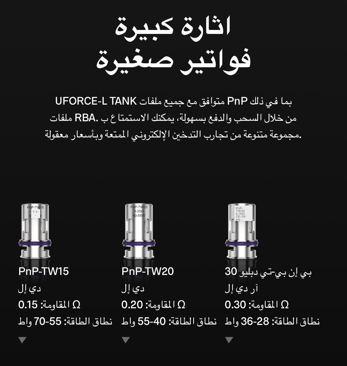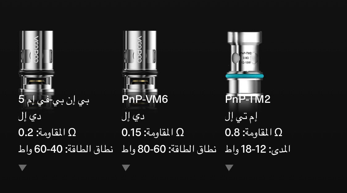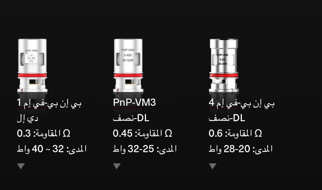 - PnP-VM1 Mesh 0.3 Ω (32–40 واط، بخار مباشر DTL)