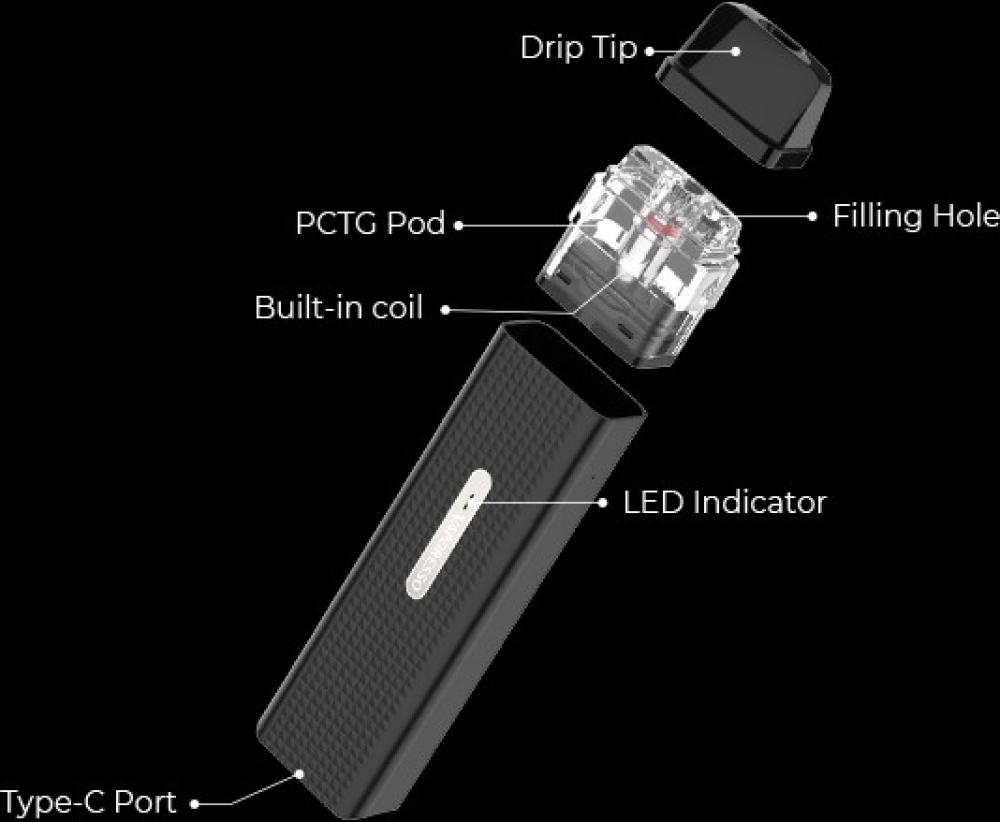 الجهاز يجي ببطارية 1000mAh تعيش معك يوم كامل، وسحبة تلقائية ناعمة بدون أزرار. تصميمه المعدني بلمعة ألماسية يعطيه فخامة، والبودات فيه تعطي نكهة ناعمة وثابتة من أول نفخة لآخرها.